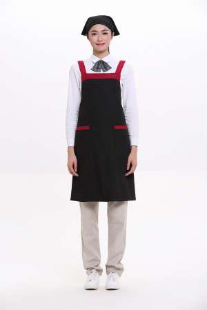 日式簡約撞色時尚家居圍裙9238紅色/黑色半身女